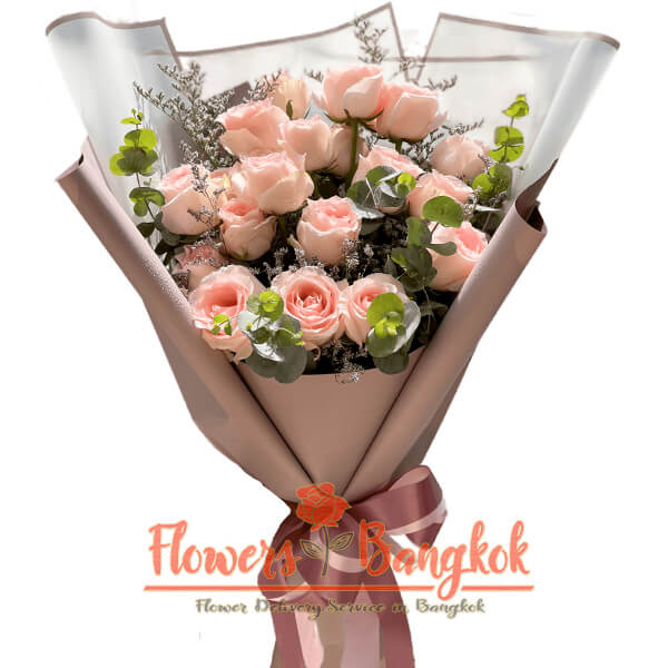 The language of flowers has been used for centuries to convey emotions and messages, and pink roses are no exception. These premium 18 pink roses from Flowers-Bangkok are carefully selected by our experienced florists and represent gratitude, admiration, and joy. This makes them a perfect gift for any occasion, whether it’s a romantic gesture for your partner, a heartfelt thank you to a friend, or a way to show appreciation to a parent. The price includes the highest quality imported roses, arranged by our skilled florists, and delivered fresh on the same day within Bangkok if ordered before noon. We also offer a small surcharge for delivery to the suburbs and neighboring provinces. To add a personal touch, we provide a free greeting card that you can customize with your message. Don’t miss the chance to show someone special how much you care with this stunning bouquet of pink roses from Flowers-Bangkok.