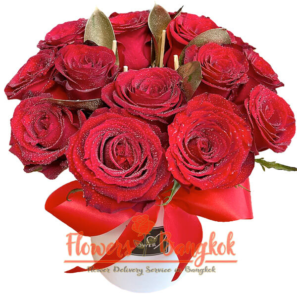 “Marry Me” flower box from the flower shop Flowers-Bangkok. This is a vibrant flower box containing 15 gorgeous red roses. The name of the box is not accidental: in the central part between the flowers there is a special holder for a small box with a ring. But you can order this magnificent box from Flowers-Bangkok without such a solemn occasion as a marriage proposal, but simply to make a pleasant surprise for your beloved girl. Delivery in Bangkok and a greeting card are included in the price.